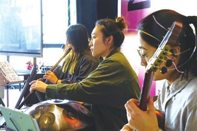 “艺人匠心”受访代表孟璐(中)和她的如也乐团在现场表演。
