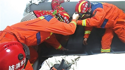本报2月16日讯 2月11日下午5时许,青岛开发区消防救援大队接到求救电话,淮河西路一小区内,一名女子的手腕被卡在床缝内,急需救援。