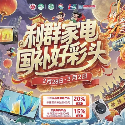 春日至,万象新。2月28日至3月2日,利群电器重磅推出“国补好彩头”惠民活动,以“真补贴、优服务、全品类”的焕新盛宴,助力岛城消费者开启品质生活新篇章。此次活动中,国补以旧换新补贴政策再度加码,叠加利群电器多年积累的贴心服务与实在价格,为市民打造了一场绿色智能家电的焕新狂欢。