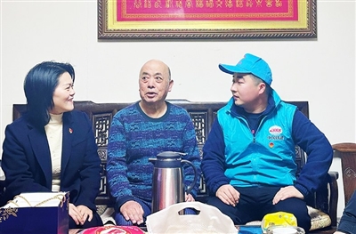 王肖峰(左)带领志愿者看望老人,凝聚地铁建设最大“同心圆”。 (本人供图)