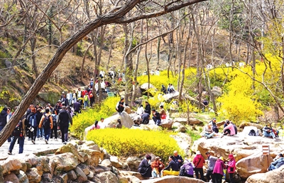 春光和煦,踏青正当时。四月的大珠山,杜鹃花与迎春花、连翘、玉兰等交织绽放。登大珠山,成为众多游客到青岛西海岸新区踏春首选。
