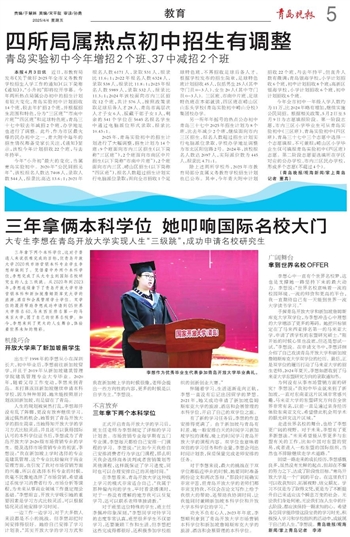 本报4月3日讯 近日,市教育局发布《关于做好2025年全市义务教育学校招生入学工作的通知》(以下简称《通知》),“小升初”即将拉开序幕。今年两所热点局属公办初中的招生计划有较大变化,青岛实验初中计划招收14个班,较去年扩招2个班,并根据招生范围和特色,分为“三区班”“市南中片班”“四区班”和足球特色班;青岛三十七中较去年减招2个班,办学地址也进行了调整。此外,作为市区最火爆的民办初中之一,青大附中每年的招生情况都备受家长关注,《通知》显示,该校今年计划招收22个班,与去年持平。