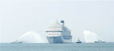 爱达·魔都号享受水门最高礼遇。(市交通运输局供图)