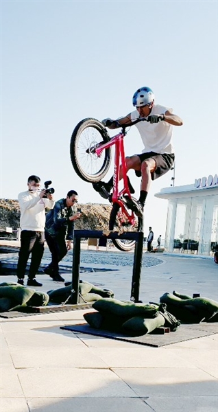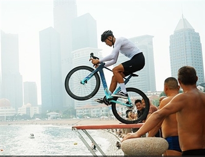 自行车只有两个轮子,还能怎么骑?张京坤在短视频里给出了答案:骑自行车冲浪、骑自行车与青岛大爷一起练跳水、骑自行车走扁带、骑自行车开啤酒瓶盖……层出不穷的创意,既让自行车成为了他的四肢,也把自行车运动跨界链接到青岛的时尚运动领域。