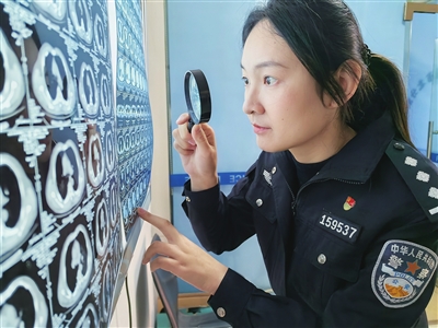 4月1日上午,记者采访彭雪梅时,一名男子带着X光片到法医门诊就诊。彭雪梅将X光片放在灯箱上仔细查看——她要从中梳理出最准确的鉴定依据。