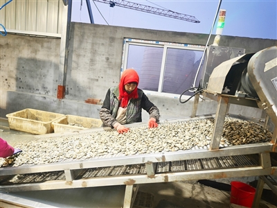 随着蛤蜊的收获,播种蛤蜊苗也要同步进行。王元说:“蛤蜊一般生长周期为一年,如果养到两年,蛤蜊皮变厚,肉也不鲜嫩了。一般收完蛤蜊就撒苗,这样不耽误第二年的收成。”