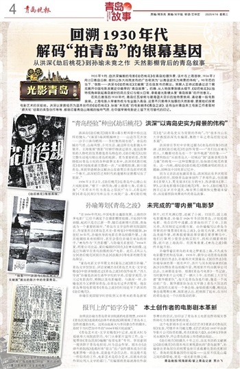 在风云激荡的1930年代,青岛红瓦绿树与碧海蓝天交织的独特景致间,涌动着一股电影浪潮。上海电影人带着热忱与专业踏入青岛,这里不只是得天独厚的天然影棚,更是他们探索电影艺术的实验地。洪深以家族经历为蓝本创作的《劫后桃花》,孙瑜“未完成”的电影剧本《青岛之波》,还有当时青岛本土电影工作者取材“顺天轮”劫案的类型创作等等,都烙印着青岛山海城的独特气质,在中国早期电影史上留下无可替代的印记。