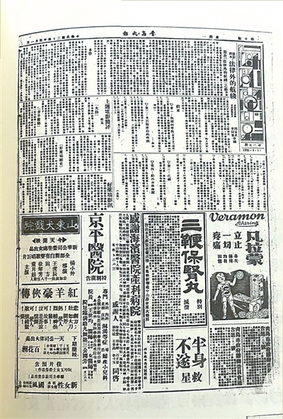 1935年,《法律外的航线》在《青岛民报》“每周电影”刊出。图片出自《青岛艺术史·文学史稿卷》。