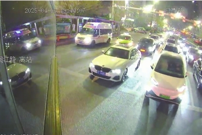 12日13时许,212路驾驶员赵剑驾车行至延安路延安二路车站时,忽然听到后方传来救护车鸣笛声。赵剑发现一辆救护车由远及近驶来,被旁边车辆挡住通行线路。他意识到情况紧急,在确保乘客安全后,迅速判断路况,启动车辆主动向后倒车,让出一条通道,救护车得以顺利前行。车辆监控镜头记录下了赵剑让行的一幕。