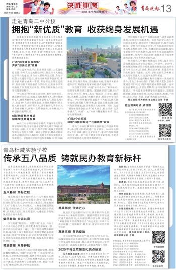 在青岛教育版图上,青岛杜威实验学校正熠熠生辉!作为一所民办寄宿制高中,自2020年加入青岛五十八中教育集团,便开启了书写卓越教育篇章的征程。2021年,随着青岛五十八中教育集团“一校三地”一体化办学模式的启动,学校依托西海岸新区东、西两个校区,将“五八品质”与“杜威特色”深度融合,全力打造民办高中教育典范,成为莘莘学子追逐梦想的理想殿堂。