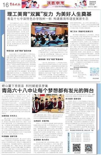 青岛六十八中是梦想的摇篮,是成长的乐园。在这里,学生们能收获知识、追逐梦想,遇见更好的自己。期待更多学子加入青岛六十八中,书写辉煌篇章! 青岛晚报/观海新闻/掌上青岛记者 于娜