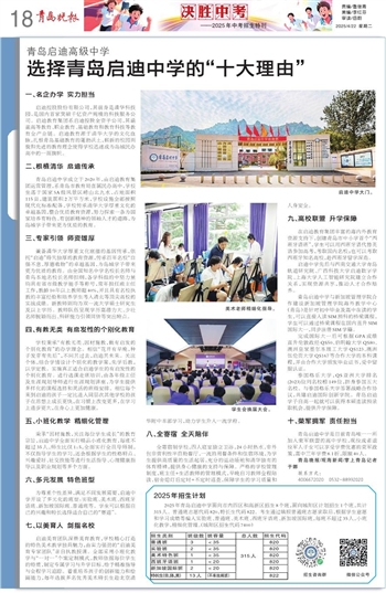 2025年青岛启迪中学面向市内四区和高新区招生8个班,面向城阳区计划招生1个班,共计315人。普通班志愿代码820,特长生代码822。考生通过填报普通班志愿录取后,根据学生意愿和学习成绩等编入实验班、普通班、美术班、西班牙语班、新加坡国际班,每班不超过35人,小班化教学,精细化管理。(城阳区招生代码7400)