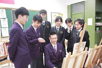 格兰德中学美术特长班以清美、央美、国美等知名美院选拔标准为主要教学体系,结合经验丰富的师资队伍和科学有效的校本课程,着重培养学生的创新意识和绘画能力,助力学生进入一流大学。学校目前拥有一支由清华附中专家领衔,清华美院等知名高校硕士生任专业教师的精英美术教师团队,为学生架设升学发展“直通车”。美术专家团队乔老师是北京市骨干教师,原清华附中一体化美术领导小组主任,曾培养73名学生升入清华美院。团队授课老师吴老师为清华美院绘画系专业总分全国第一。据了解,目前格兰德中学美术特长班已有多名学生具备冲刺三大美院的实力,在原有成绩的基础上学生实现大幅提高,真正实现了“低进高出”的教学成果。