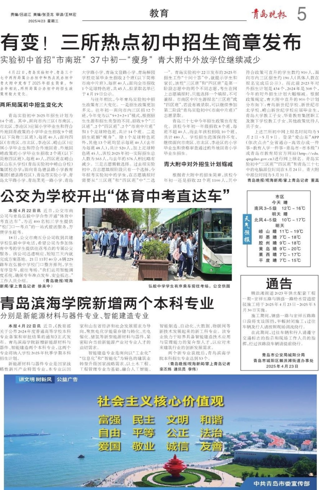 A01 头版 A02 焦点 A03 发布 A04 关注 A05 教育 A06 城事 A07 青岛故事 A08 文化新闻