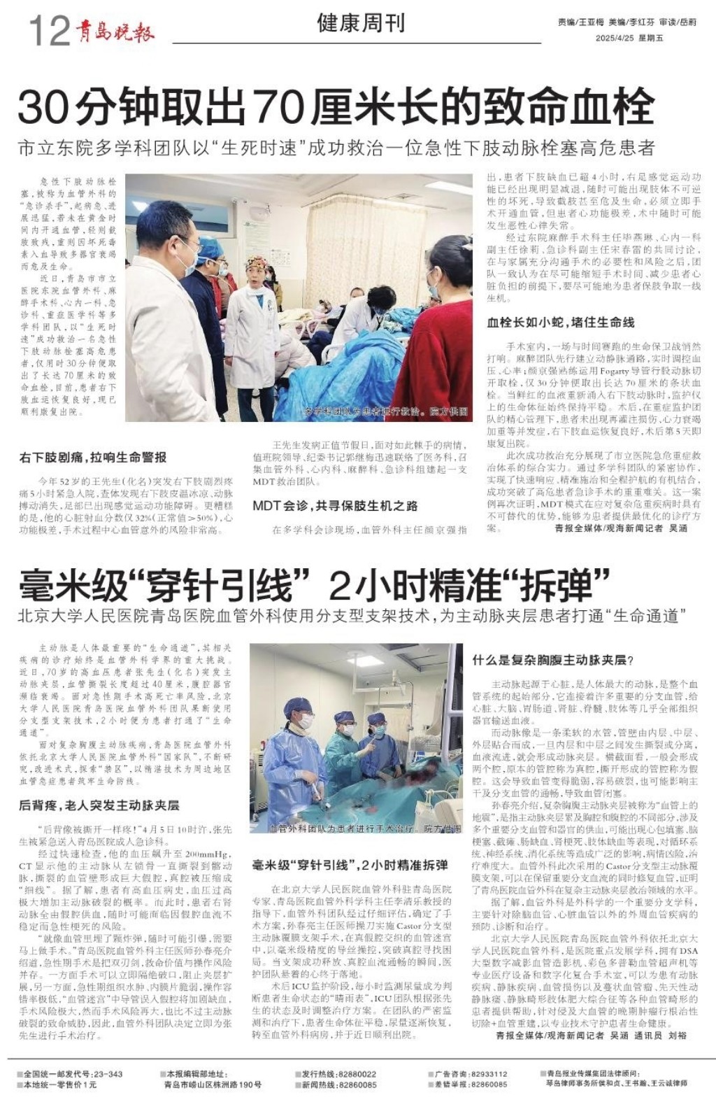 康复大学青岛中心医院提醒 深静脉血栓早诊早治是关键