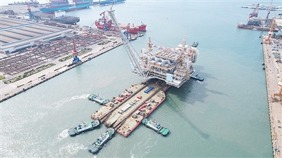 本报4月30日讯 总重约33100吨、吃水深度创纪录、潮汐计算要精确到厘米级……近日,在青岛引航站的精心保障下,无动力驳船“海洋石油229”轮载运着大型海工装备模块,在主拖轮“海洋石油681”拖带下安全驶离青岛海西湾武船麦克德莫特码头,起航前往下一港进行调试工作。