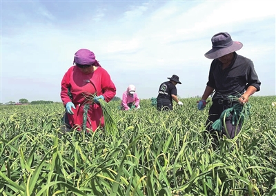 本报4月30日讯 4月30日,在平度市仁兆镇的万亩蒜田里,村民们正在采收蒜薹。种植户代文阳介绍:“今年气候适宜,田间管理也跟得上,种的早熟品种蒜薹比常规品种能提前半个月上市。”