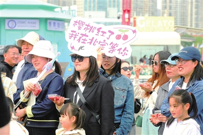 “樱桃的盒子上印着‘每一颗樱桃都是爱你的模样’,我觉得北宅樱桃红红的,很喜庆,特别适合跟家人一起分享。我是土生土长的崂山人,我为家乡的樱桃点赞。”市民刘女士抓起一大把樱桃塞进嘴里,她说这是标准的“土著吃法”,适合大快朵颐地解馋尝鲜。