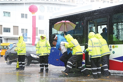 我市公共交通系统举行防灾减灾应急演练。交运集团供图