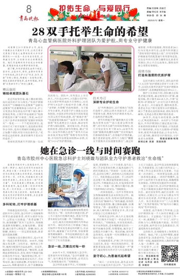 在青岛市胶州中心医院急诊科,有这样一群护士:她们没有惊天动地的壮举,却在日复一日的坚守中,用专业与担当托举起无数生命的希望,刘晓璇是其中的一员。6年来,刘晓璇从初入职场的青涩新人,成长为急诊一线“中坚力量”。无论是凌晨心梗抢救,还是深夜突发意外,她总是第一时间冲到现场,用一次次按压、一次次除颤……把患者从死亡线上拉回来。她的故事,正是这支急诊护理团队的缩影,点点温情汇聚成守护生命的力量。