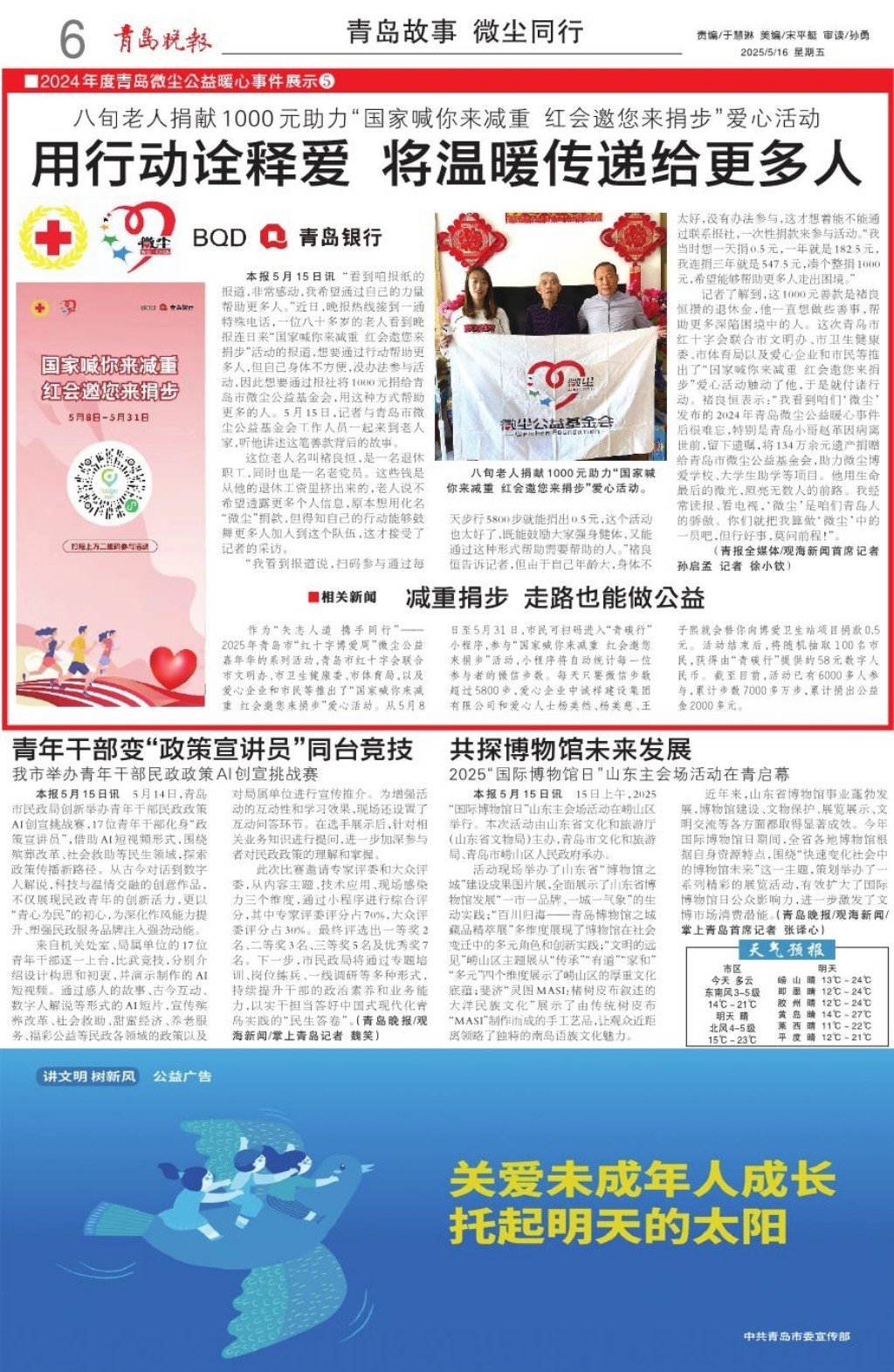 A01 头版 A02 发布 A03 关注 A04 城事 A05 倾听与商量 A06 青岛故事 微尘同行 A07 健康周刊 A08 健康周刊