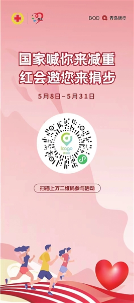 作为“矢志人道 携手同行”——2025年青岛市“红十字博爱周”微尘公益嘉年华的系列活动,青岛市红十字会联合市文明办、市卫生健康委、市体育局,以及爱心企业和市民等推出了“国家喊你来减重 红会邀您来捐步”爱心活动。从5月8日至5月31日,市民可扫码进入“青碳行”小程序,参与“国家喊你来减重 红会邀您来捐步”活动,小程序将自动统计每一位参与者的微信步数。每天,只要微信步数超过5800步,爱心企业中诚祥建设集团有限公司和爱心人士杨美然、杨美慈、王子熙就会替你向博爱卫生站项目捐款0.5元。活动结束后,将随机抽取100名市民,获得由“青碳行”提供的58元数字人民币。截至目前,活动已有6000多人参与,累计步数15000多万步,累计捐出公益金5000多元。