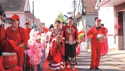 “其实一开始只是个尝试,没有想到能够带来这么大的影响。”毕纪花介绍,如今“帮喜团”的服务范围从三河埠村拓展至全镇,附近村里办喜事都点名要她们“镇场子”,也有很多乡镇特意前来学习“经验”,因为她们带来的不仅是仪式,更是一套可复制的“文明模板”,是婚嫁文明新风。