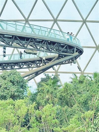 水丰富区的“风暴森林”无疑是园区的一大亮点。采用“水立方”同款ETFE膜,打造独特景观,解锁水循环奥秘。踏入此区域,游客可以化身“小水滴”搭乘“万米穿梭机”飞越暗河,随水蒸气升腾至雨林云端,听水流潺潺与林中鸟鸣,体验雷电暴雨的震撼与彩虹初霁的绚烂。风暴森林以高山源地瀑布落水为视觉中心,游客通过天空步道可纵览整个区域,感受生态的震撼。