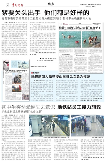 晚报新闻人物获授山东省见义勇为模范
