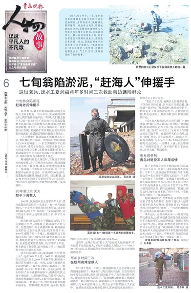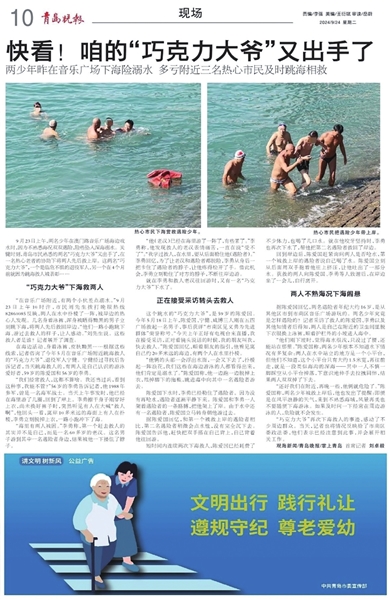 ▶去年9月,晚报关于“巧克力大爷”下海救人的报道。