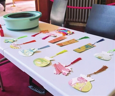 德国总督楼旧址博物馆邀请小朋友体验漂染书签。