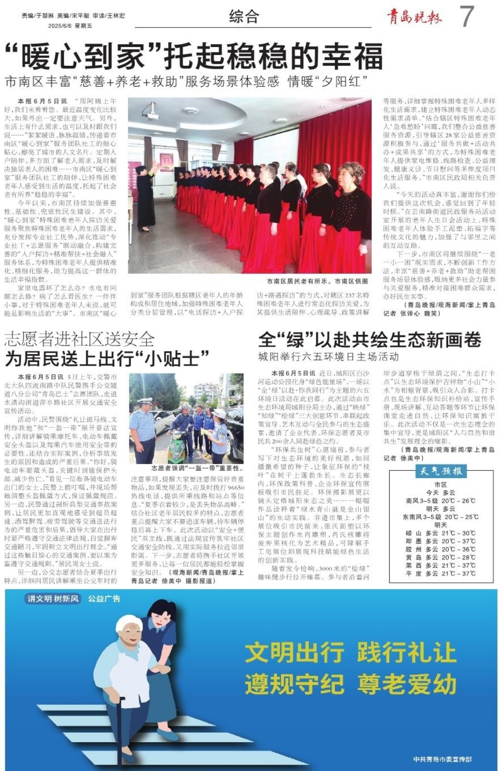 A01 头版 A02 关注 A03 视点 A04 赢在考季 A05 农行杯“青岛乡里乡亲”系列社会典型风采展示 A06 城事 A07 综合 A08 健康周刊