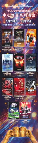 7月20日至8月15日,青岛时空文化集团将在青岛西海岸新区金沙滩啤酒城中心舞台重磅打造20场高规格演出,为市民游客带来一场艺术狂欢盛宴,树立文旅消费升级的标杆实践。