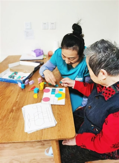 医养结合机构工作人员(左)上门为老人提供服务。市南区卫生健康局供图