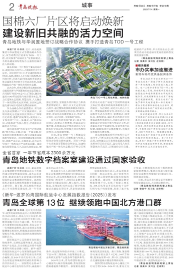 本报7月13日讯 近日,青岛地铁集团与华润置地正式签署战略合作协议,双方将携手打造青岛TOD一号工程,共同探索“站城共生”发展新模式,为青岛建设国际性综合交通枢纽城市注入新动能。