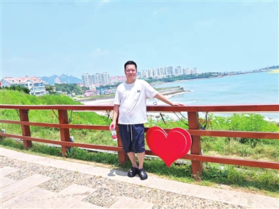 ◀王良伟到燕岛山公园打卡。受访者供图
