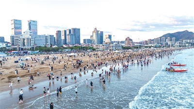 石老人浴场人气爆棚。杨志军 摄