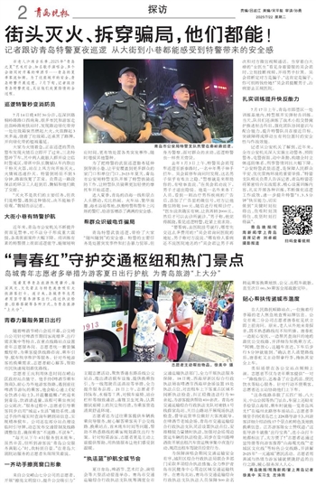 进入夏季,青岛的沿海一线和景点人头攒动,无比热闹。火车站、繁华商圈、海水浴场等地,执勤特警和警车上闪烁的警灯,给游客增添了满满的安全感。