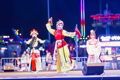 19时许,金沙滩啤酒城四面台舞台流光溢彩,歌舞飞扬。歌舞《筑梦》拉开了启动仪式的序幕。舞蹈《唐宫夜宴》《五洲风情》及京剧联唱《迎春》等节目陆续登场,带来融合音乐、舞蹈与文化风情的精彩演绎,让多元艺术在舞台上交汇,用旋律串联中外文明,在展示中国文化深厚底蕴的同时,促进上合组织国家间文化互鉴与融合。