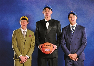 7月26日,杨曦皓(中)杜智博(右)和庞峥麟在选秀大会上合影。新华社发