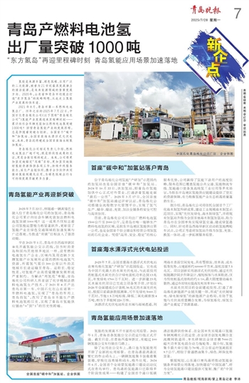 2021年8月,青岛市第一车燃料电池氢出厂。四年之后的2025年7月22日,中国石化青岛炼化公司(以下简称“青岛炼化公司”)氢能产业发展迎来里程碑时刻——累计向社会车辆充装加注燃料电池氢突破1000吨!回望青岛氢能产业的发展历程,总是伴随着突破与创新。全国首个“碳中和”加氢站、全国首座海水漂浮式光伏电站,未来,青岛还将建成全国首座海水制氢加氢站。