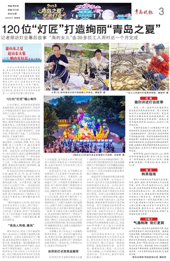 在裱糊工序工作的女工小雷就特别喜欢青岛。在一次采访中她告诉记者,等到灯会开幕,她和姐妹们一定要在青岛多转转,去看看五四广场和海水浴场等景点,“青岛好美,可惜我们太忙,没有太多时间去看。”