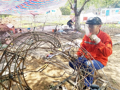 制作花灯时,有些工序不能同步进行,这120位工人根据工程进度分批来到青岛。记者在之前的采访中了解到,赶来青岛制作灯组的工人,个个经验丰富、技能精湛。他们跟随着自贡花灯“转战”过国内500多个城市,去过80多个国家和地区。这些工人当中,很多毕业于四川轻化工大学彩灯学院。彩灯学院是培养中华彩灯文化及其产业发展所需各类高级管理、技术人才的摇篮,是中国艺术彩灯观光创意示范园区和教育生产科研培训基地,也是中国彩灯文化艺术的工艺与科学研究高地。