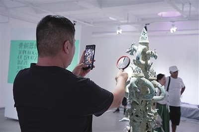 青岛观众对于这种“新青铜器”作品充满兴趣。
