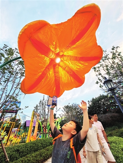 《美丽共生》灯组,形成人与自然相融相生的画面。李丽 摄