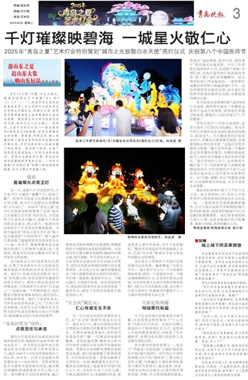 这一天,是第八个中国医师节,今年的节日主题是“德馨于行,技精于勤”。医师作为国家卫生健康事业的中坚力量,是守护人民群众生命健康的“白衣战士”。2025年“青岛之夏”艺术灯会组委会特别策划了这场“城市之光致敬白衣天使”亮灯仪式,不仅延续了灯会的艺术魅力,更赋予了其深刻的社会意义,使之成为一座城市向全体医护工作者表达的集体敬意。当流光溢彩的“青岛之夏艺术灯会”遇上饱含敬意的“中国医师节”,数千盏华灯便承载了超越视觉享受的深层含义——每一束光芒,都凝聚着青岛这座城对医者仁心的凝视与感恩;每一抹亮色,都是市民百姓对健康守护者无声却有力的回响。