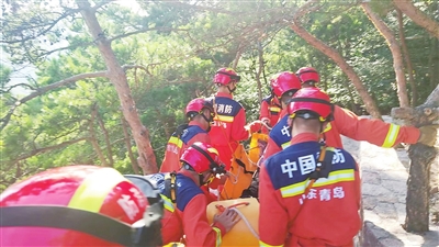 本报8月19日讯 8月18日下午,一名男子在崂山北九水景区游玩时,大腿突然出现肌无力症状,被困山中,难以自行下山。崂山区世园消防救援站接到求救电话后,立即调派救援力量。14名救援人员携带多功能担架等救援器材,徒步进山展开搜救。山路崎岖陡峭,救援人员经过一番跋涉,终于找到了被困男子及其同伴。