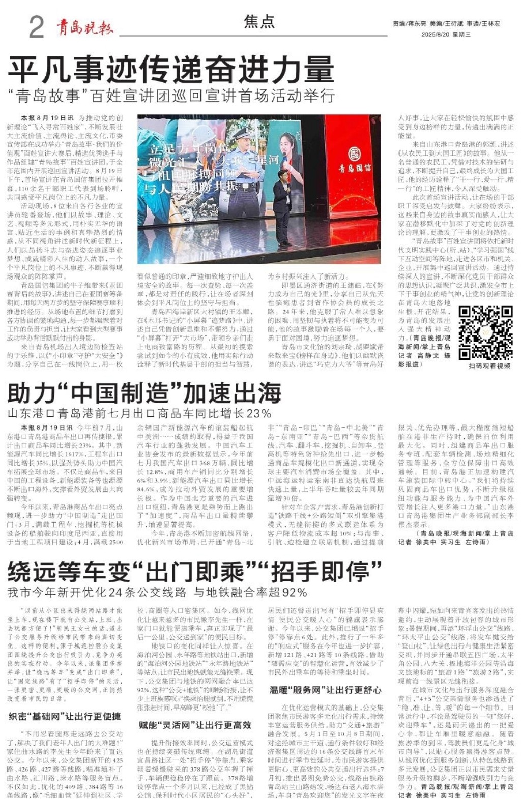 “青岛故事”传递奋进力量