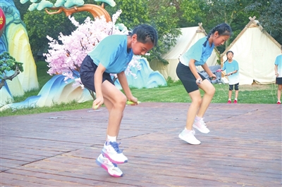 青岛小将表演花样跳绳。