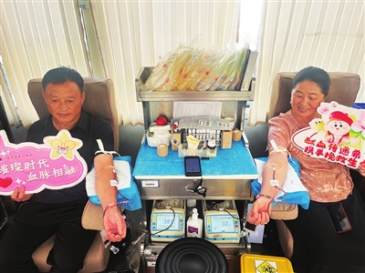 8月25日,灵山卫街道办事处组织的无偿献血活动在办事处院内温情开启。工作人员和社区居民纷纷挽起衣袖,用热血传递爱心与担当。人群中,一对夫妻的身影格外默契——他们是家住九龙社区的谭德新和陈新云。活动一开始,两人就并肩走上献血车,填表、体检、初筛、采血。“之前就听说街道组织献血,我俩一商量就一起来了。”谭先生一边按压着针眼一边笑着说,“献血既能帮助别人,对自己身体也有好处,还能一起做件有意义的事,挺有成就感的。”陈新云也跟着点头:“看着血液顺着管子流进血袋,就觉得这是在给需要的人送去希望,心里特别踏实。”